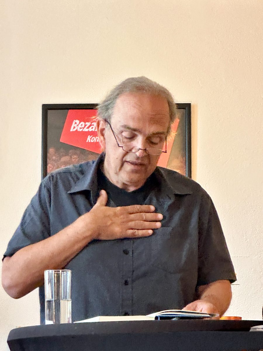 Es war ein Vergnügen zu erleben, wie Christian Suhr am Sonntagmorgen Kazims Erlebnisse lebendig werden ließ. Über zwei Stunden hinweg fesselte er am Lesepult stehend das Publikum mit einer Auswahl an Geschichten aus diesem Reisebericht, mal nachdenklich, ab und zu schulterzuckend und oft humorvoll. Ein perfekter Start in den Sonntag!