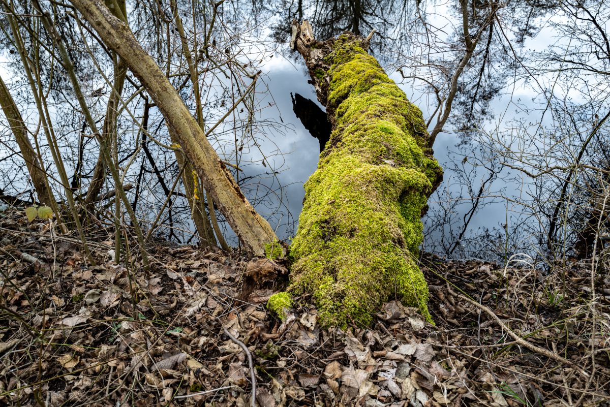 Im Groß-Gerauer Stadtwald zeigt sich der Frühling noch vorsichtig, aber unübersehbar. Zwischen Bäumen und stillem Wasser leuchtet erstes Grün aus dem Boden, zart und frisch.